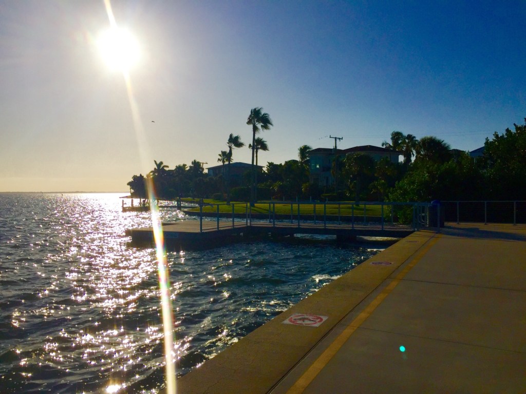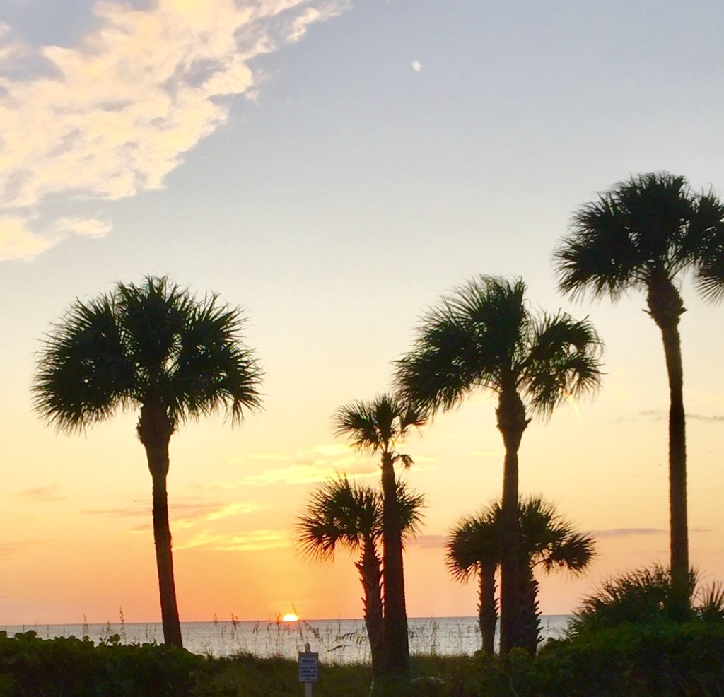 Morning Walks on the bay are breathtaking. We are greeted by beautiful sunrises, the moon, and this Osprey who is nesting on the Gulf side in the Australian Pines.