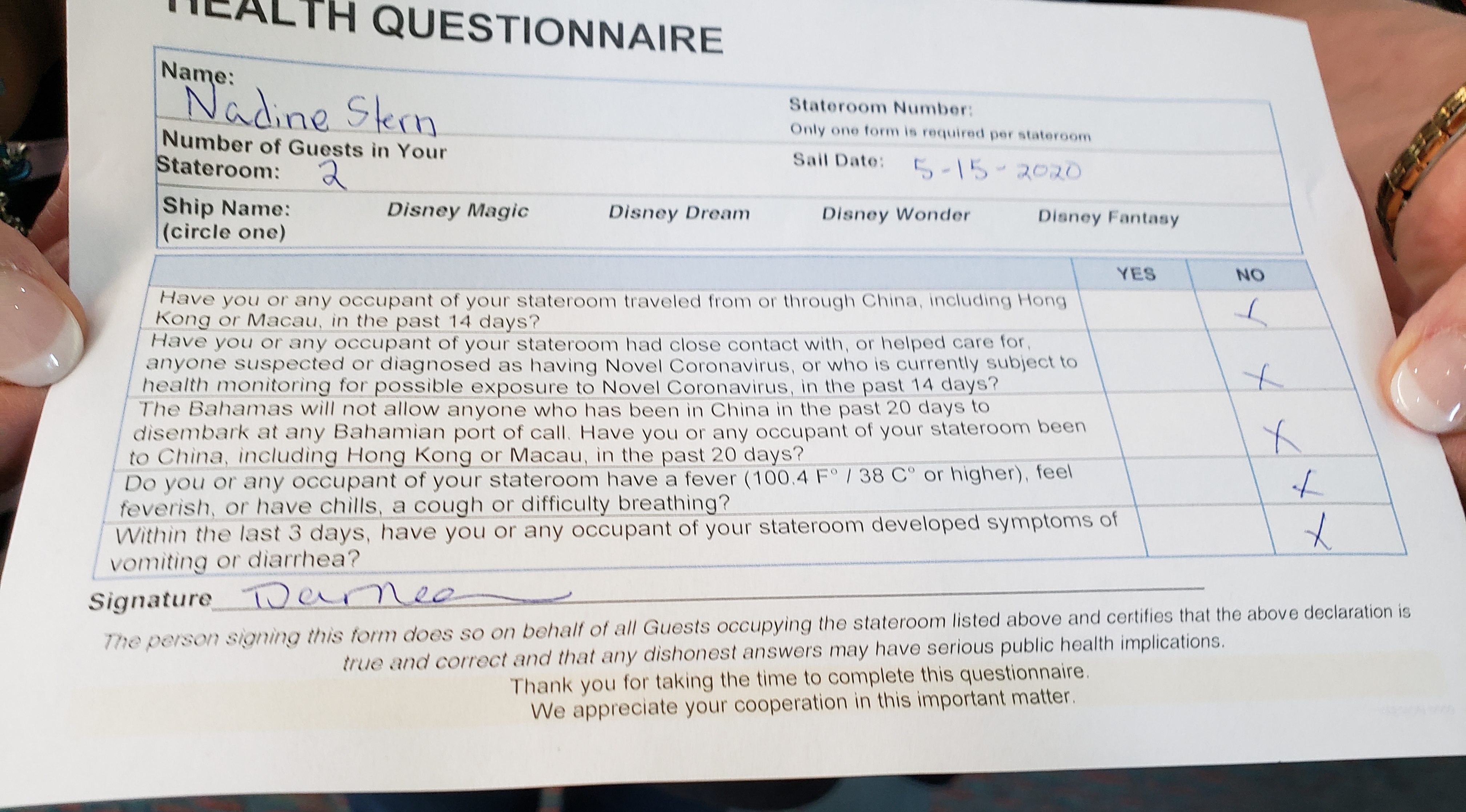 Additional signs of the times. For some odd reason, when I filled out the Disney questionnaire, I put the cruise date as May 15, 2020 instead of February 15, 2020. I’m hoping the mistake is a kismet for the date this pandemic will begin to subside.